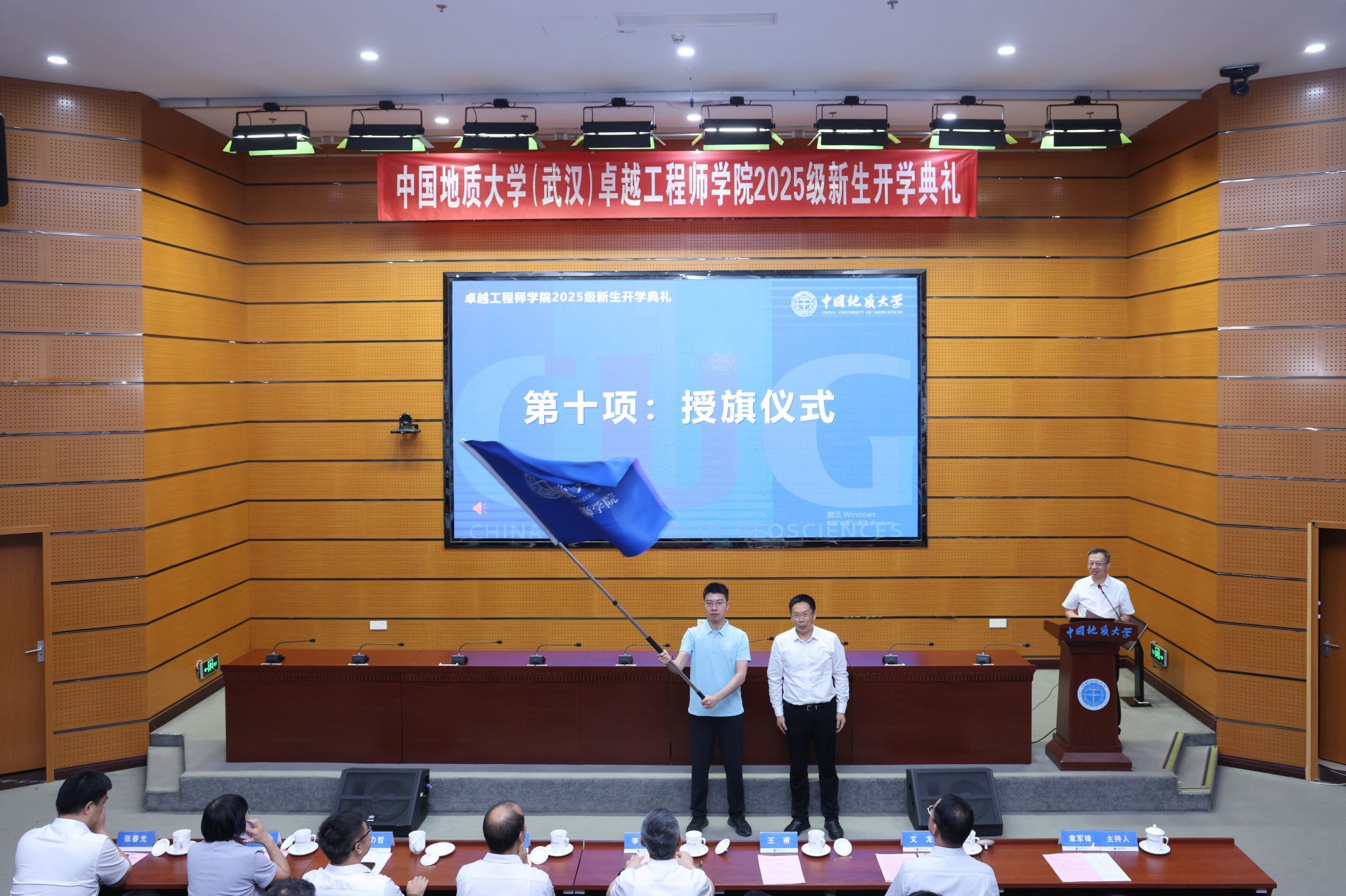 王甫向新生代表授予卓越工程师学院院旗,寓意着卓越工程师学院2025级学生的新征程正式开启。