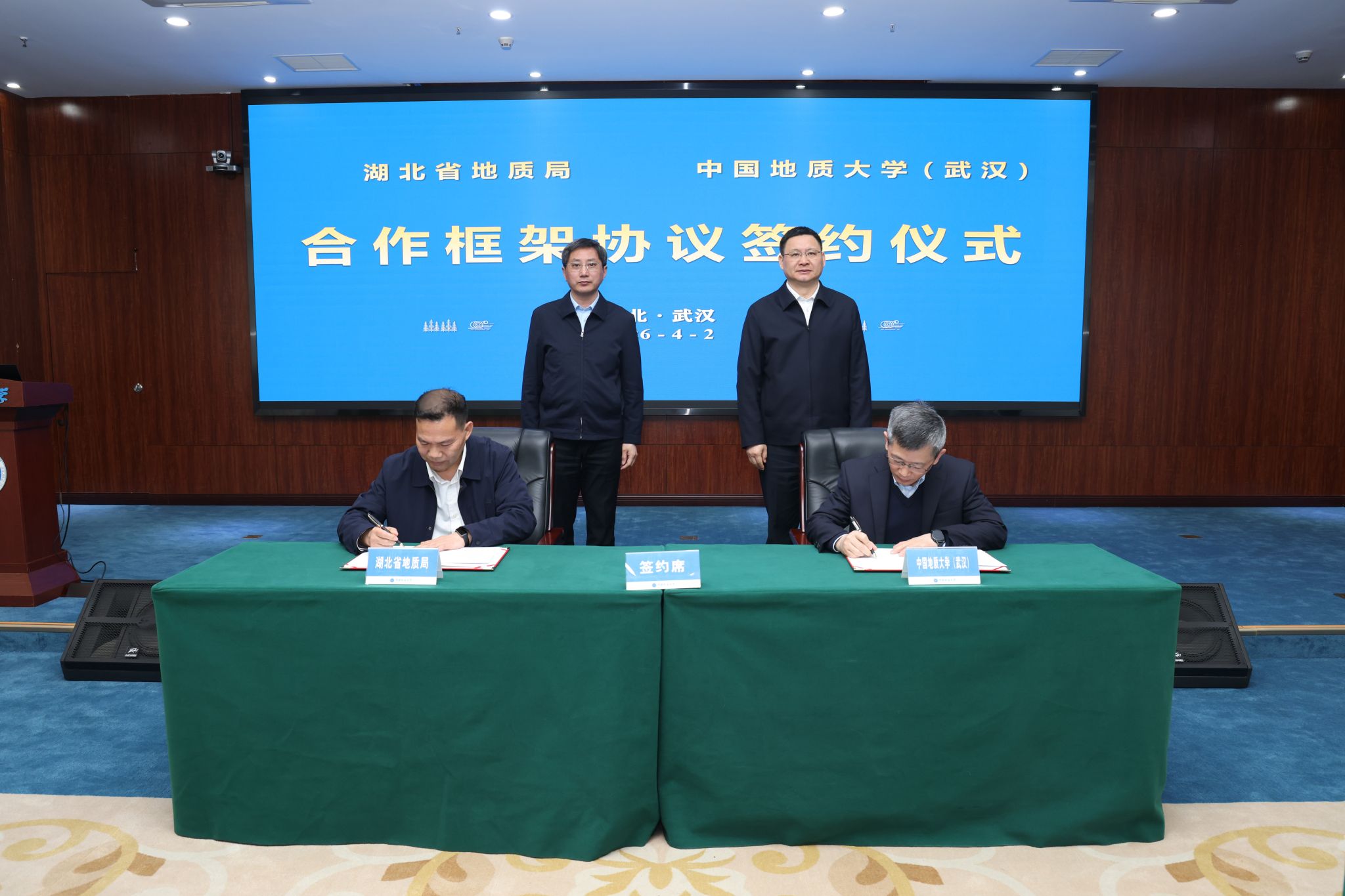 李建威、杨明银代表中国地质大学(武汉)、湖北省地质局签署合作框架协议。